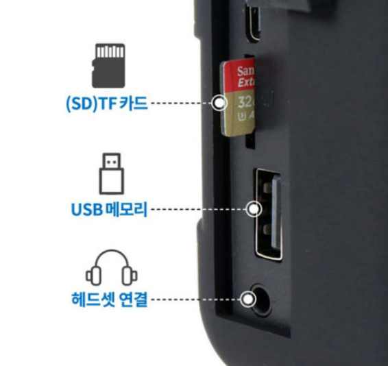 - MP3 재생 / USB, TF카드 지원