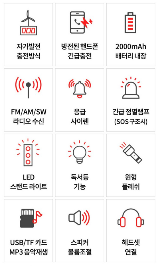 - 자가발전, 태양광, 스탠드 조명, 사이렌, 라디오까지 올인원