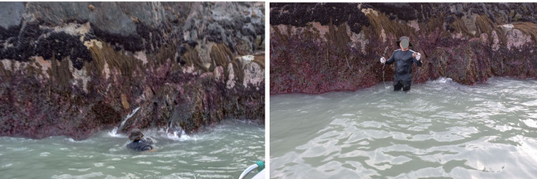 산호가 자라는 맹골도 청정 바다에서 수작업 채취