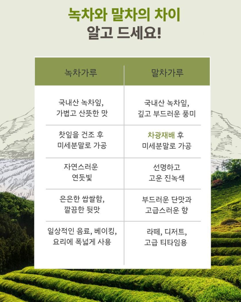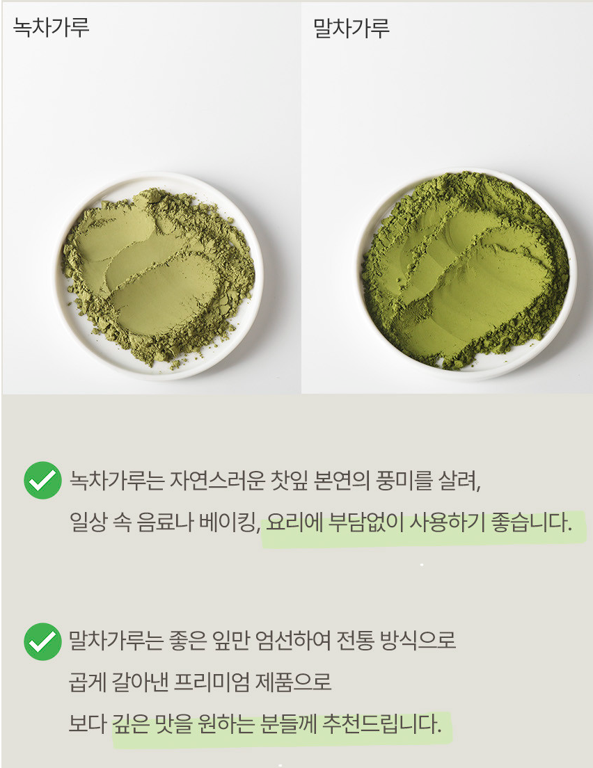 ☞ 즉, 보성말차가루는 일반 녹차가루보다 더 고급스럽고 깊은 풍미를 느낄 수 있는 제품이에요.