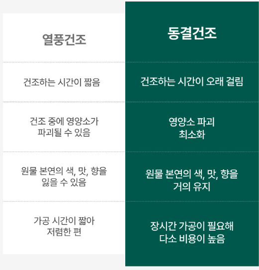 열풍건조보다 영양 보존율이 약 95% 이상으로 알려져 있어요.