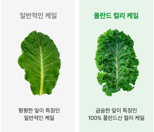 “일반 케일과 비교 불가! 영양만점 컬리케일 2장을 한 포에!”