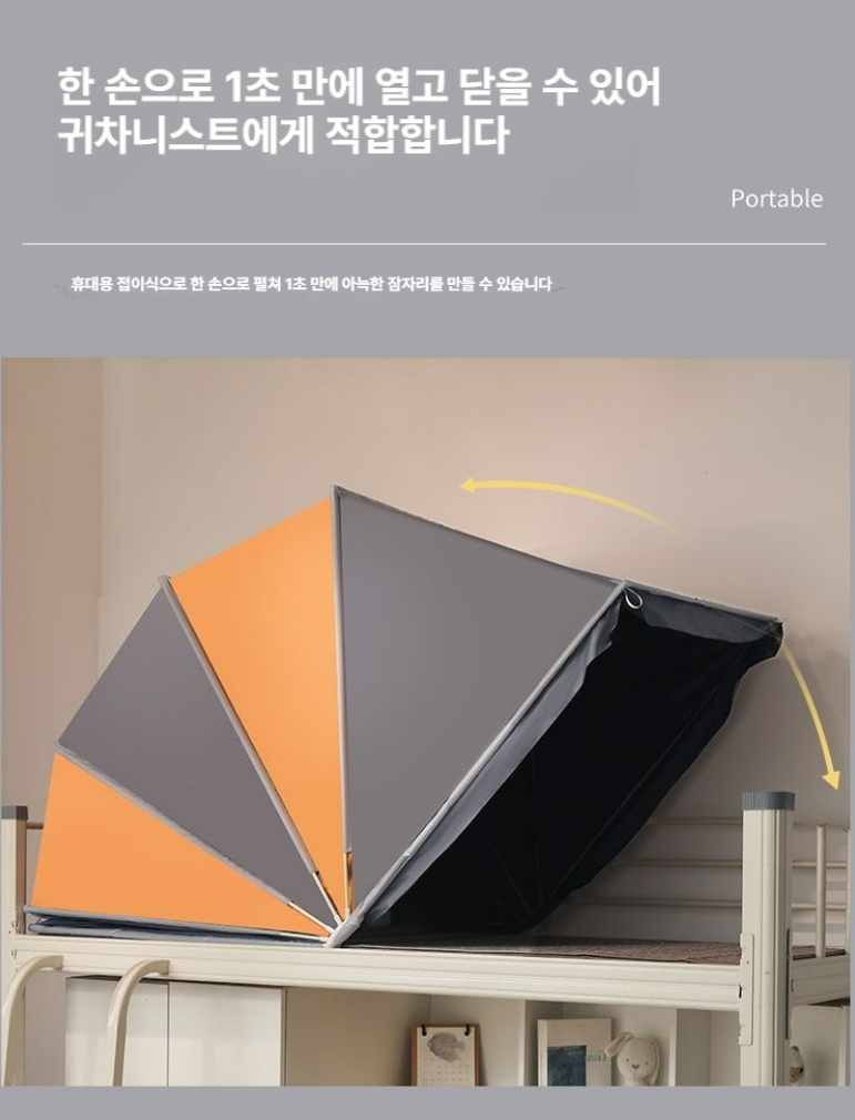 기숙사 침대나 2층 침대에서도 간편하게 사용할 수 있고,
